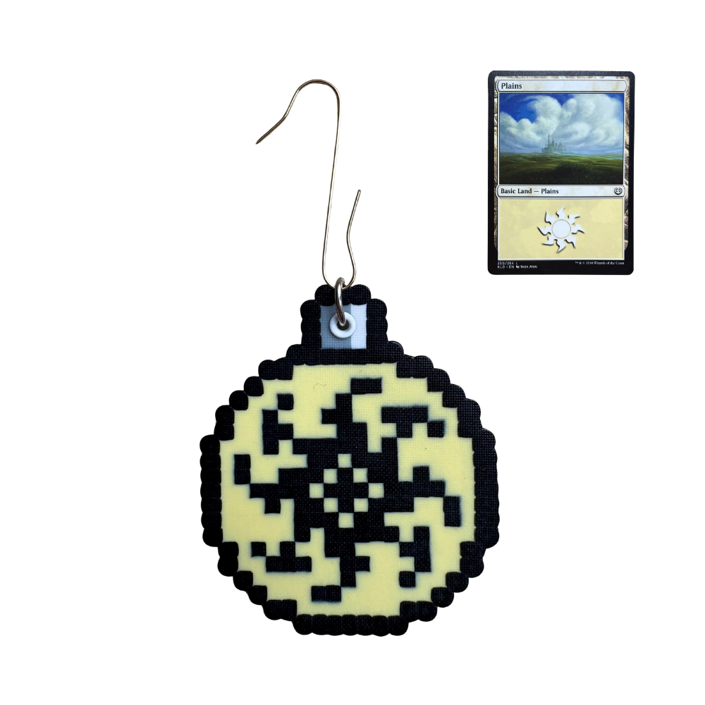 Pour les planeswalkers nostalgiques, les mages décorateurs ou les passionnés de Magic: The Gathering, voici une collection de suspensions artisanales inspirées des terrains de base emblématiques :
