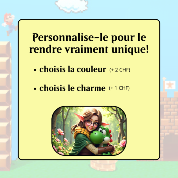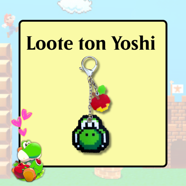 Le petit Yoshi pixelisé veille sur tes trésors comme un vrai compagnon de quête !