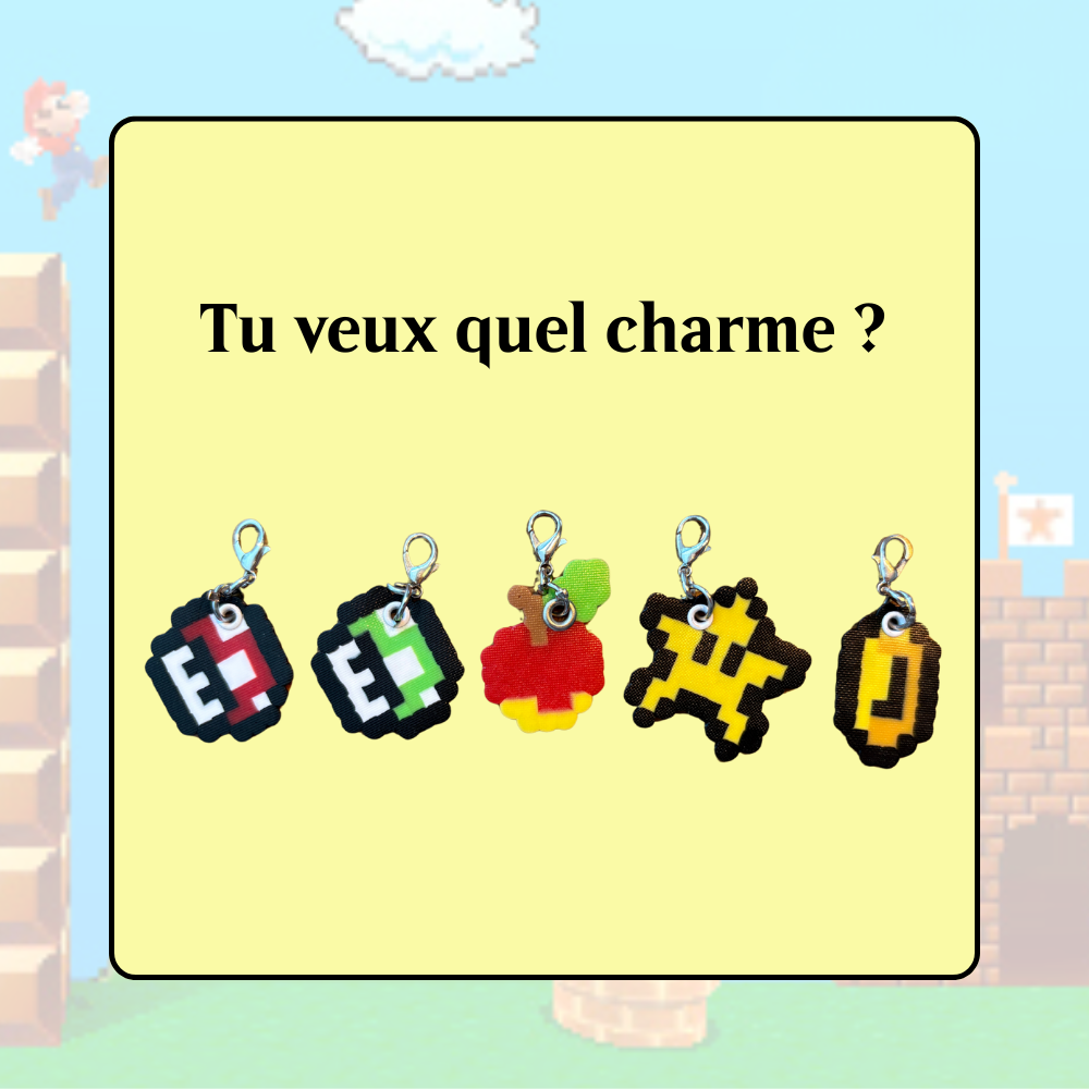 | Charme | Pomme, Champignon 1-UP, Pièce d'or, Super champignon, Super étoile |